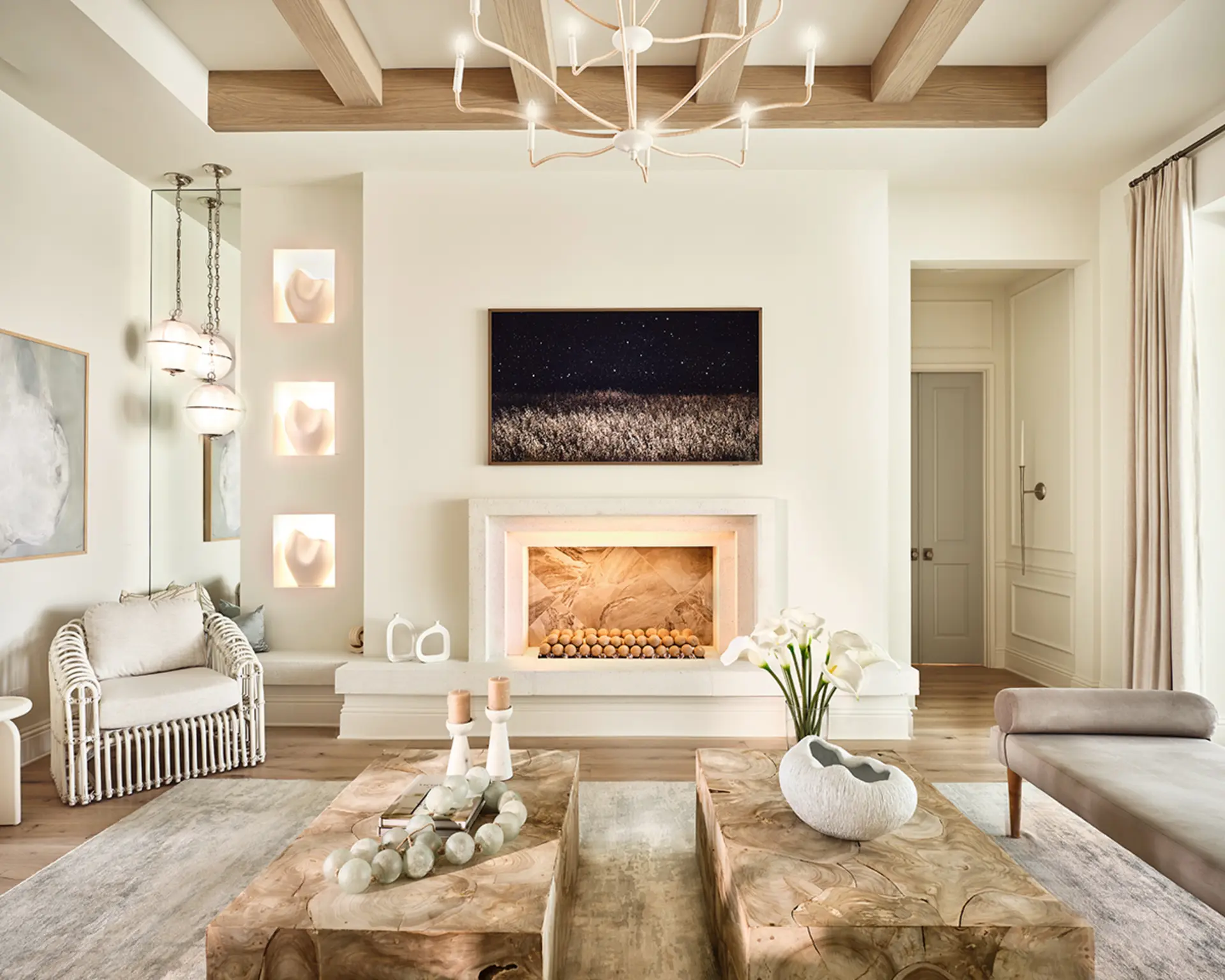 Sophisticated coastal chic. Organic + natural textures. Statement furniture functioning as art.