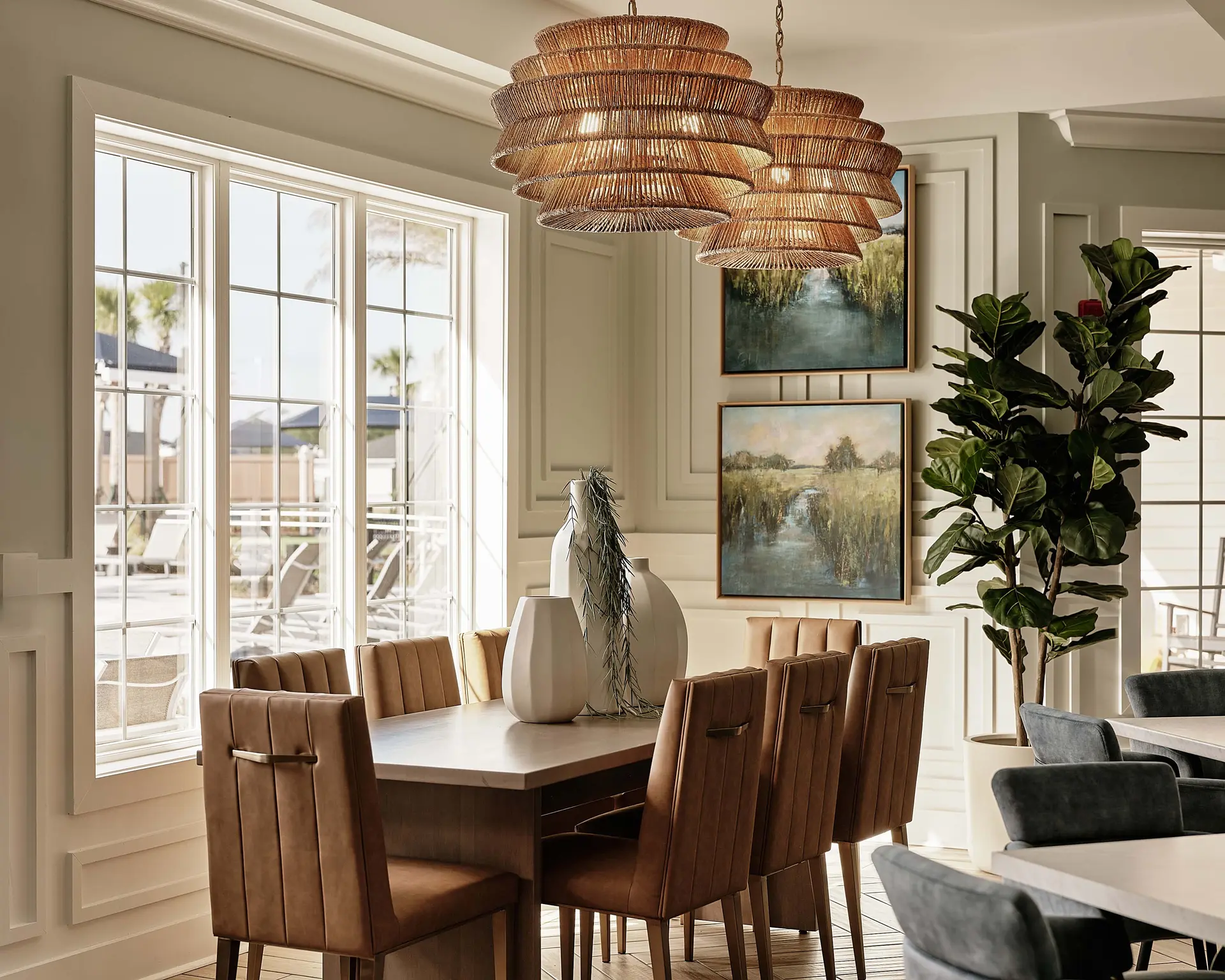 Interiors are designed to support an active, social lifestyle through welcoming, hospitality-inspired spaces. Social lounges, gathering areas, and wellness-focused amenities encourage residents to connect, relax, and stay engaged. Warm materials, layered textures, and comfortable furnishings create an inviting atmosphere that feels elevated yet familiar. Thoughtful lighting and intuitive layouts enhance ease of movement and everyday use, reinforcing a clubhouse experience that supports community, comfort, and a vibrant 55+ lifestyle.